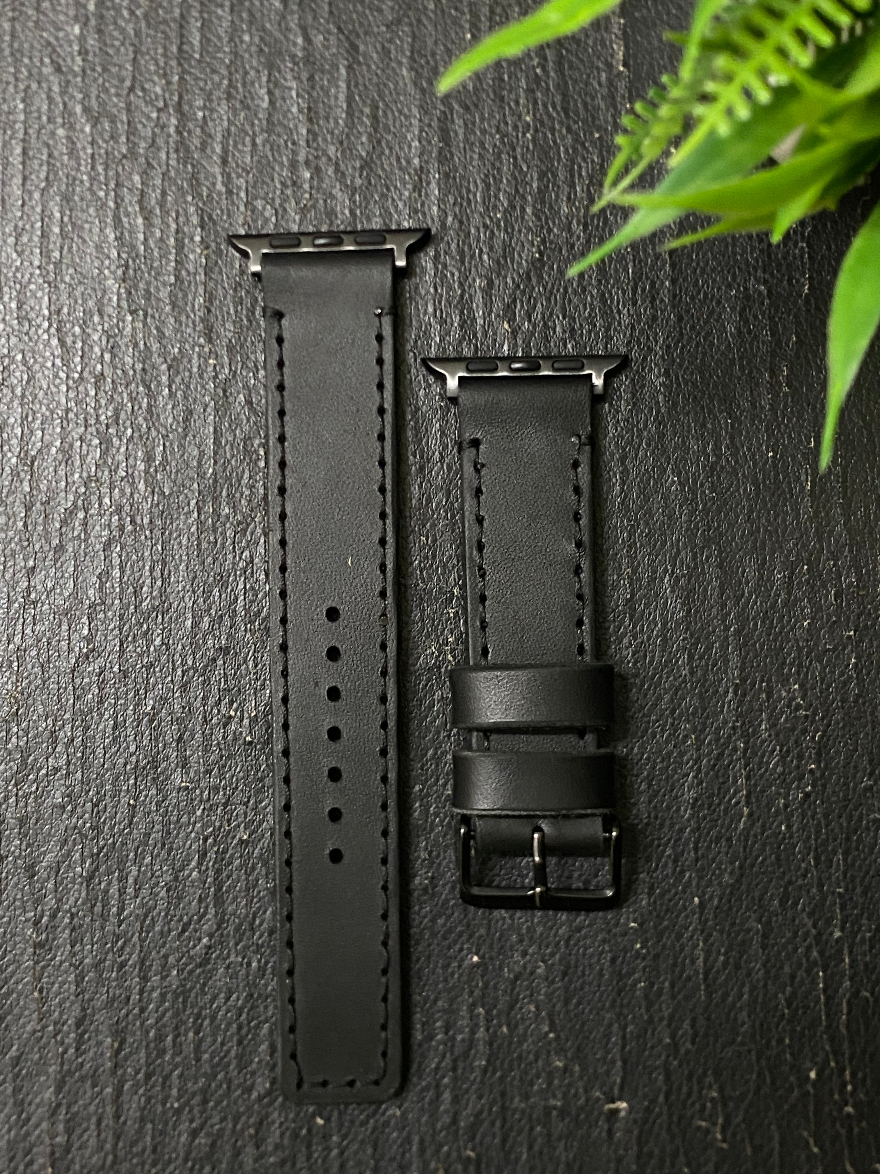 Step up your style with our Handmade Black Leather Black Thread Full Stitch Style Leather Straps / Band for Apple Watch / iWatch. + Same Leather Iphone Case Available for Almost All Models.