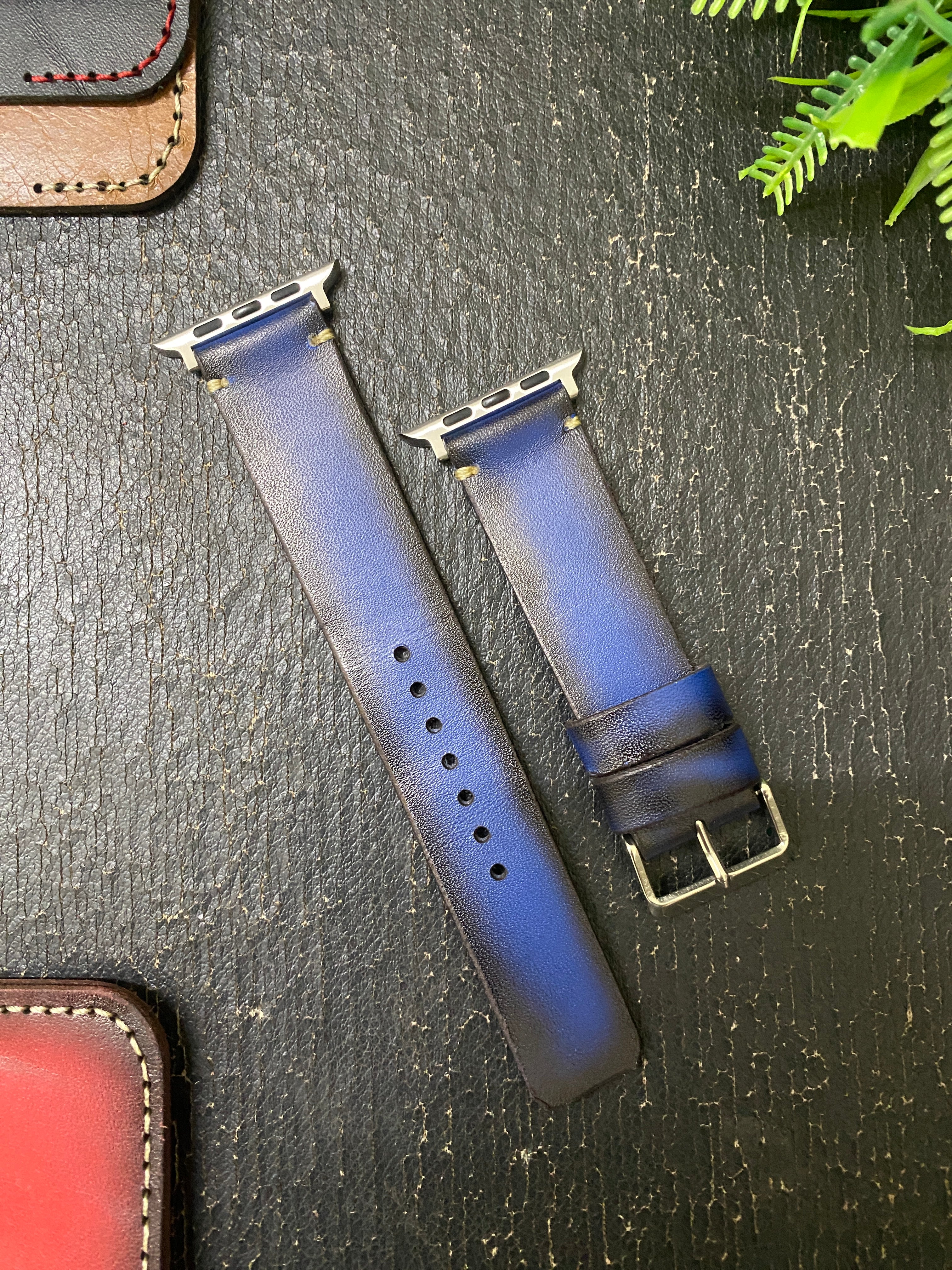 Blue Edge Tone Leather Strap Simple Style Band for Apple Watch | ZINOSKINS