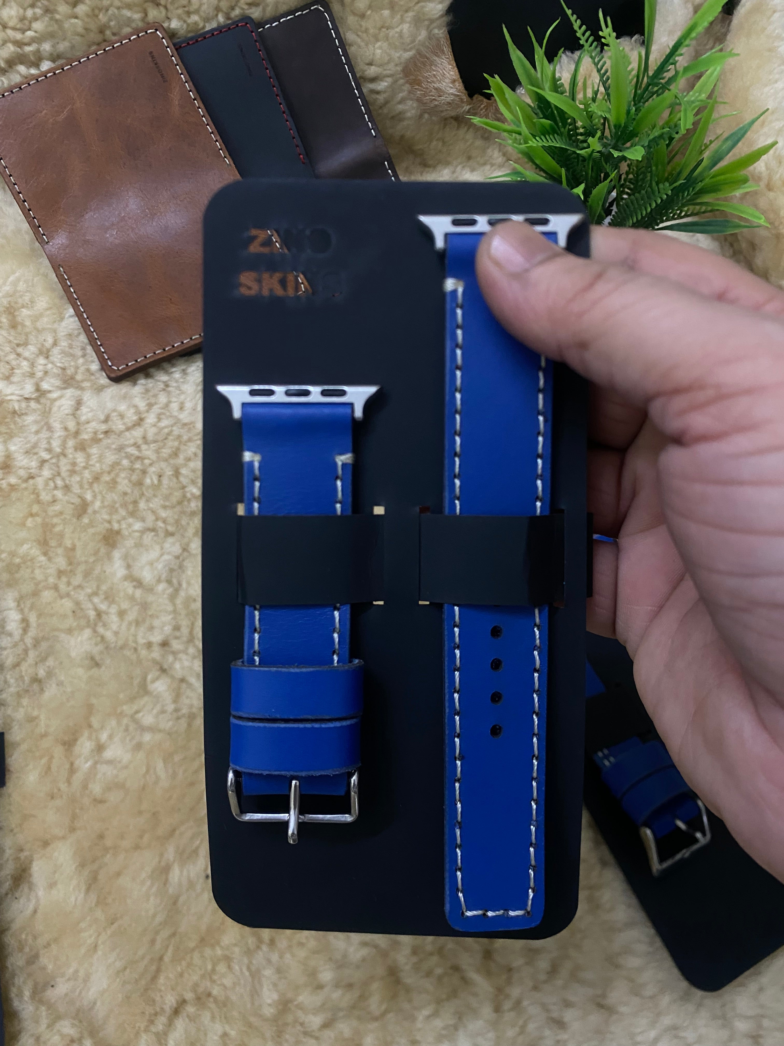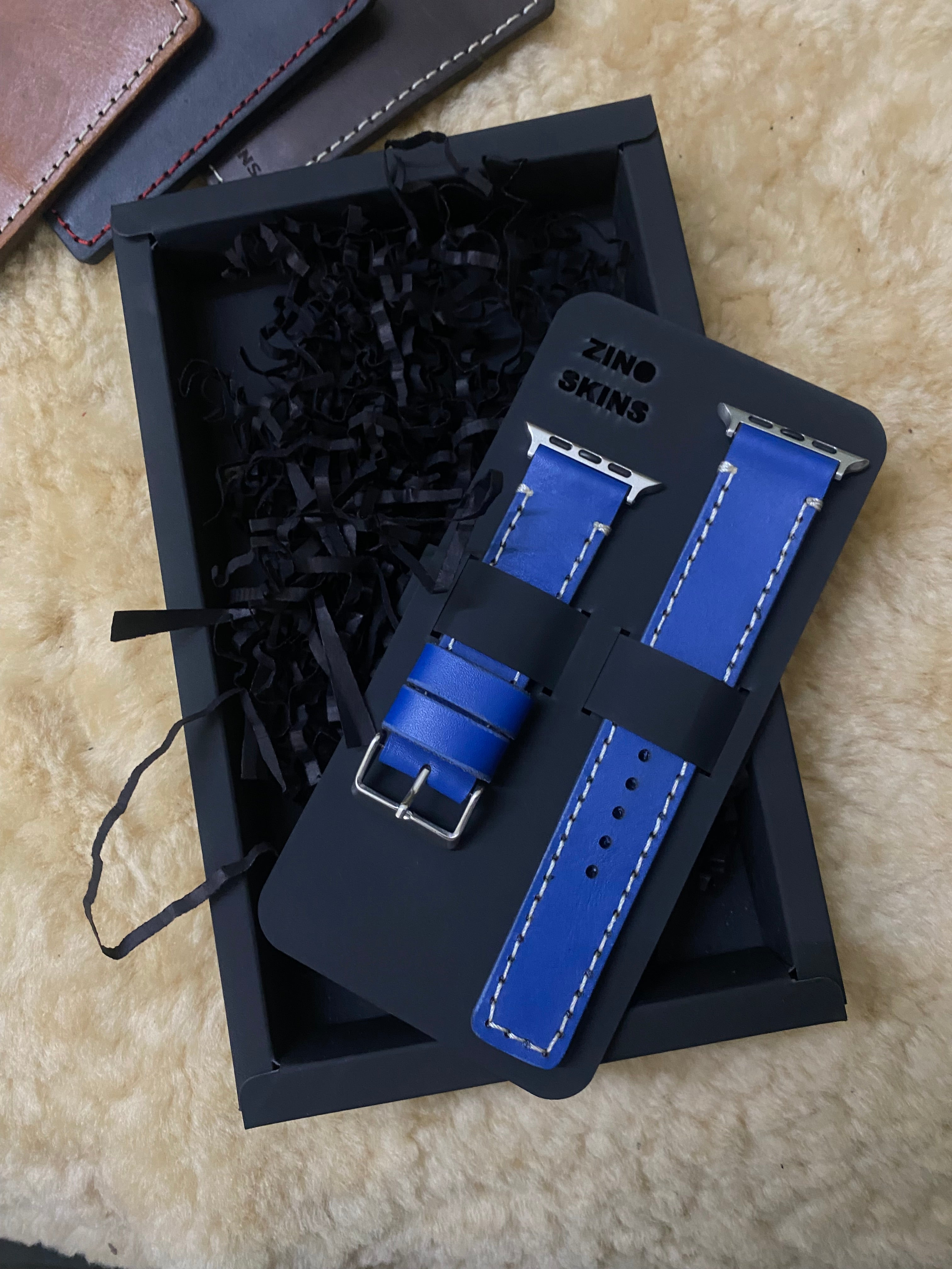 Blue Leather Strap Full Stitch Style Straps for Apple Watch Leather Band | ZINOSKINS