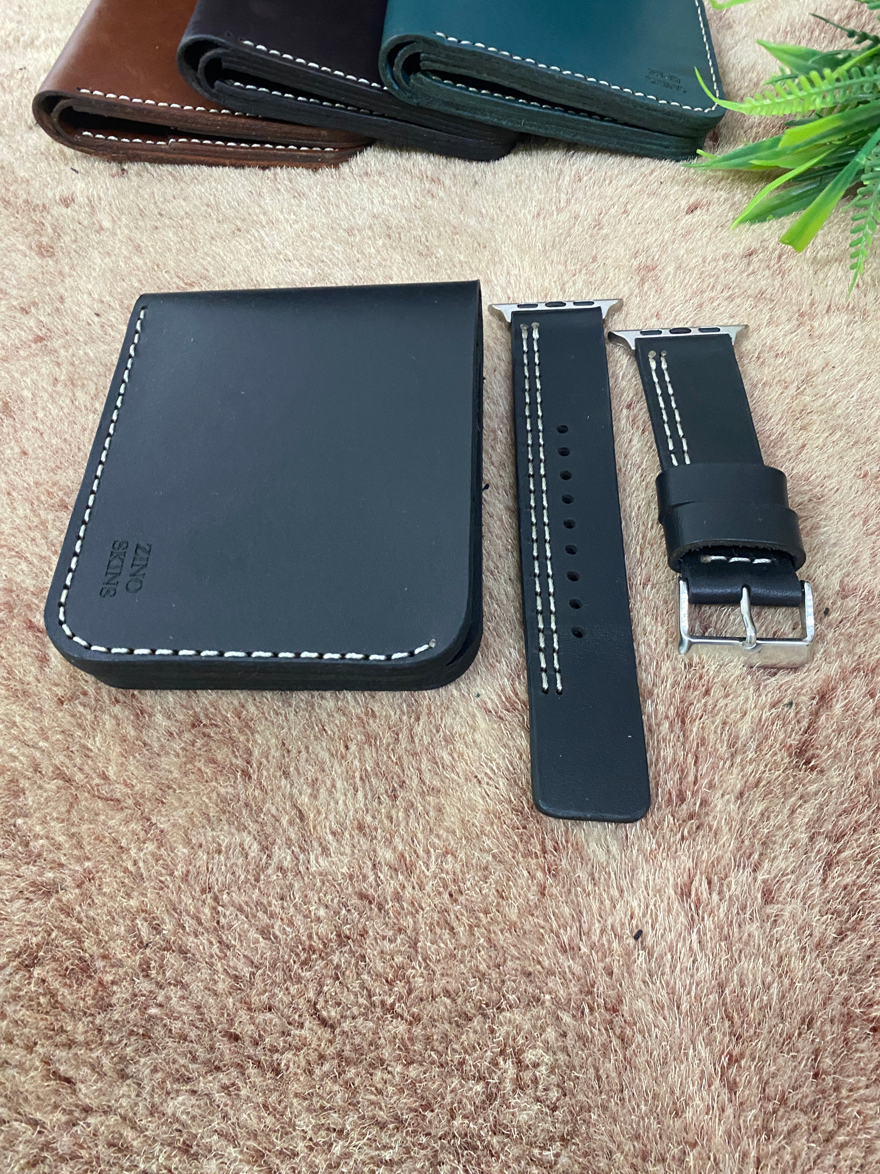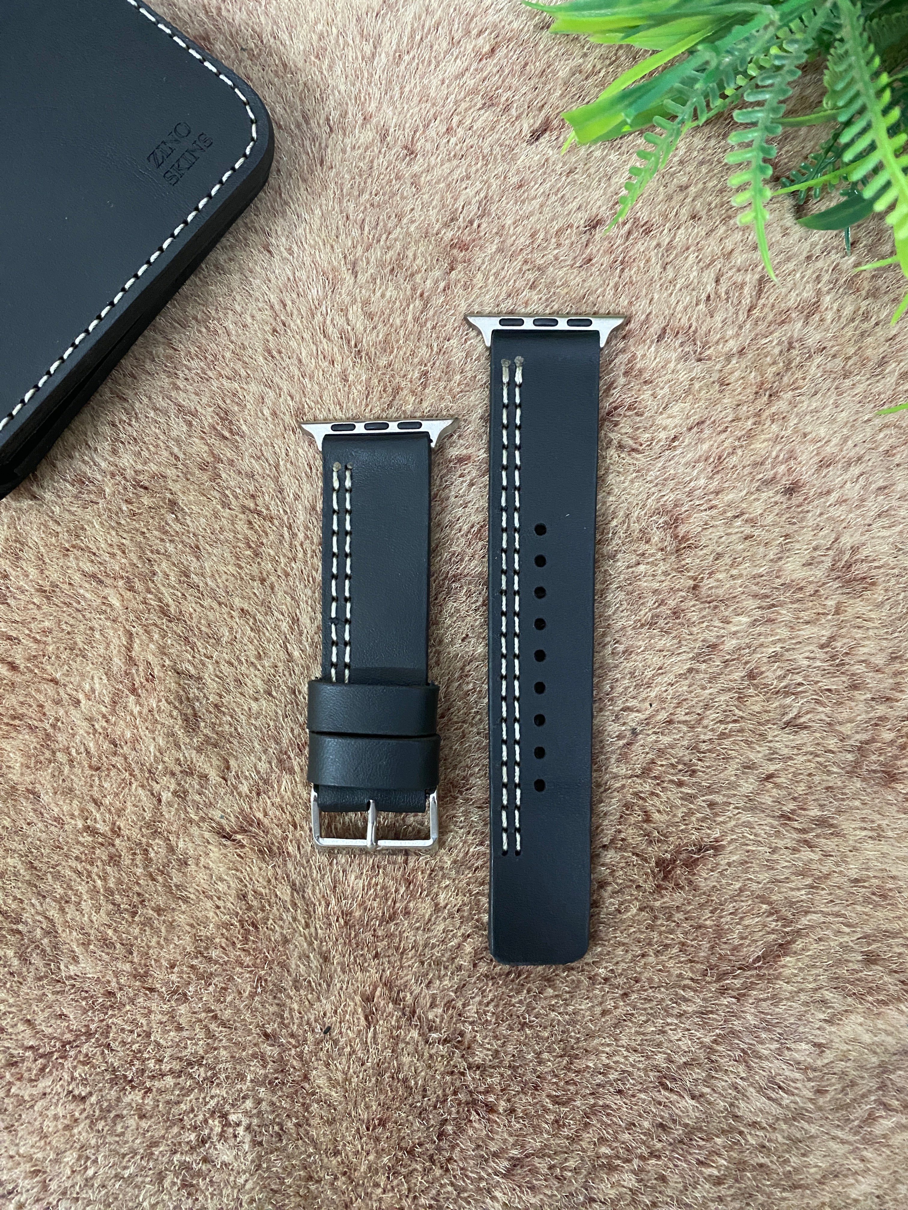 COMBO Black Leather Strap Parallel Style Band for Apple Watch + Same Color Leather Wallet Handmade | ZINOSKINS
