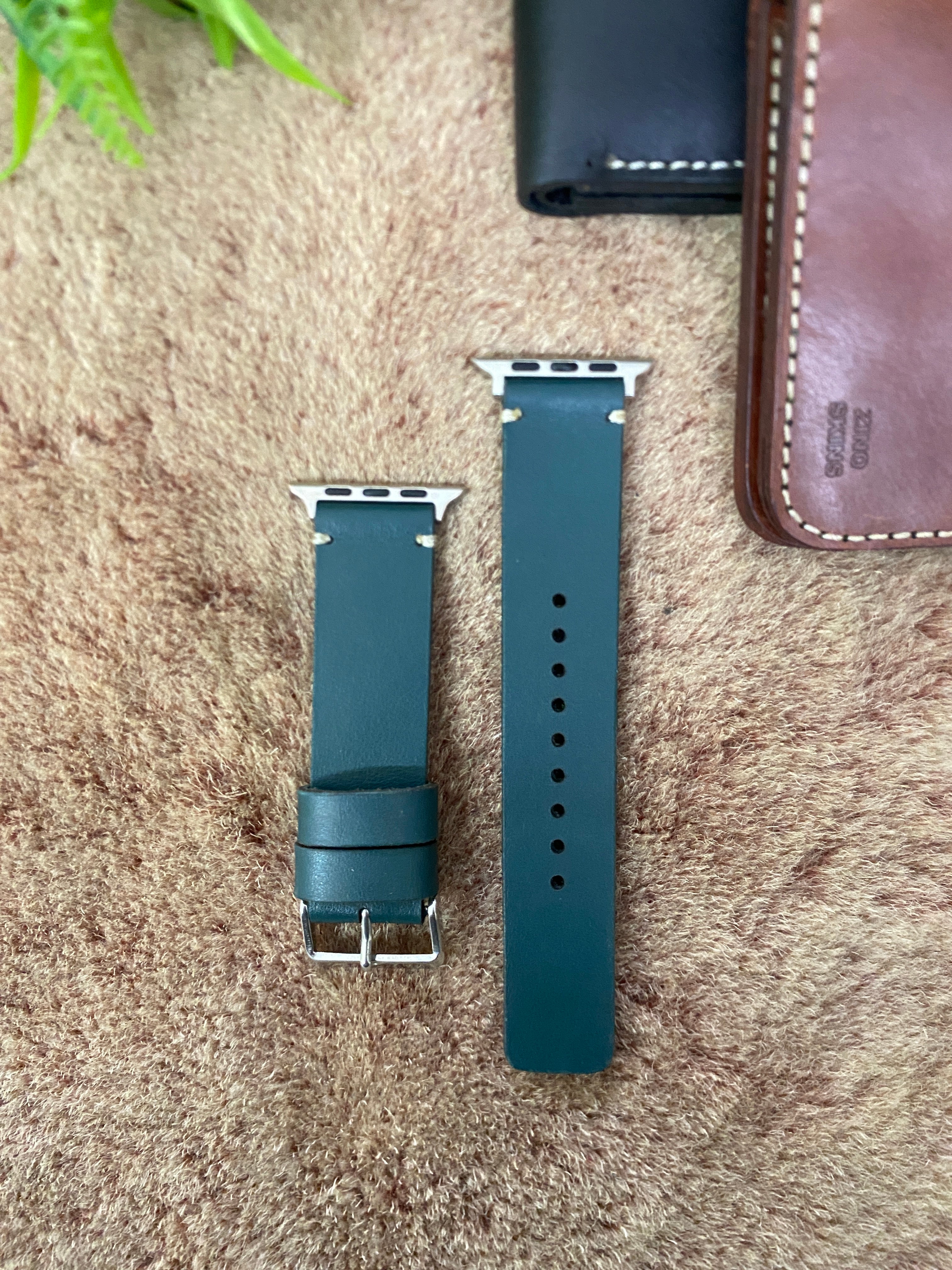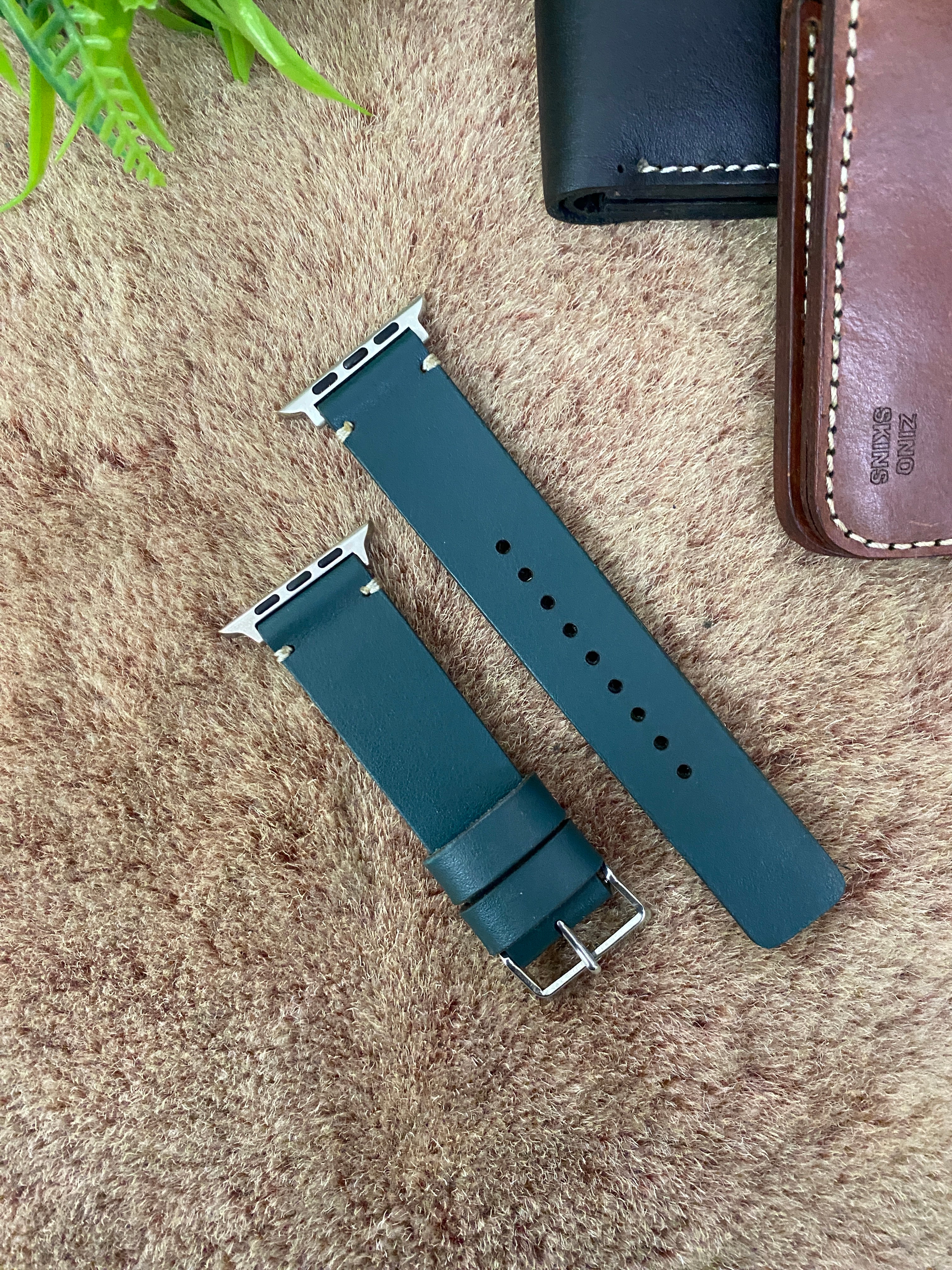 COMBO Bottle Green Leather Strap Simple Style Band for Apple Watch + Same Color Leather Wallet Handmade | ZINOSKINS
