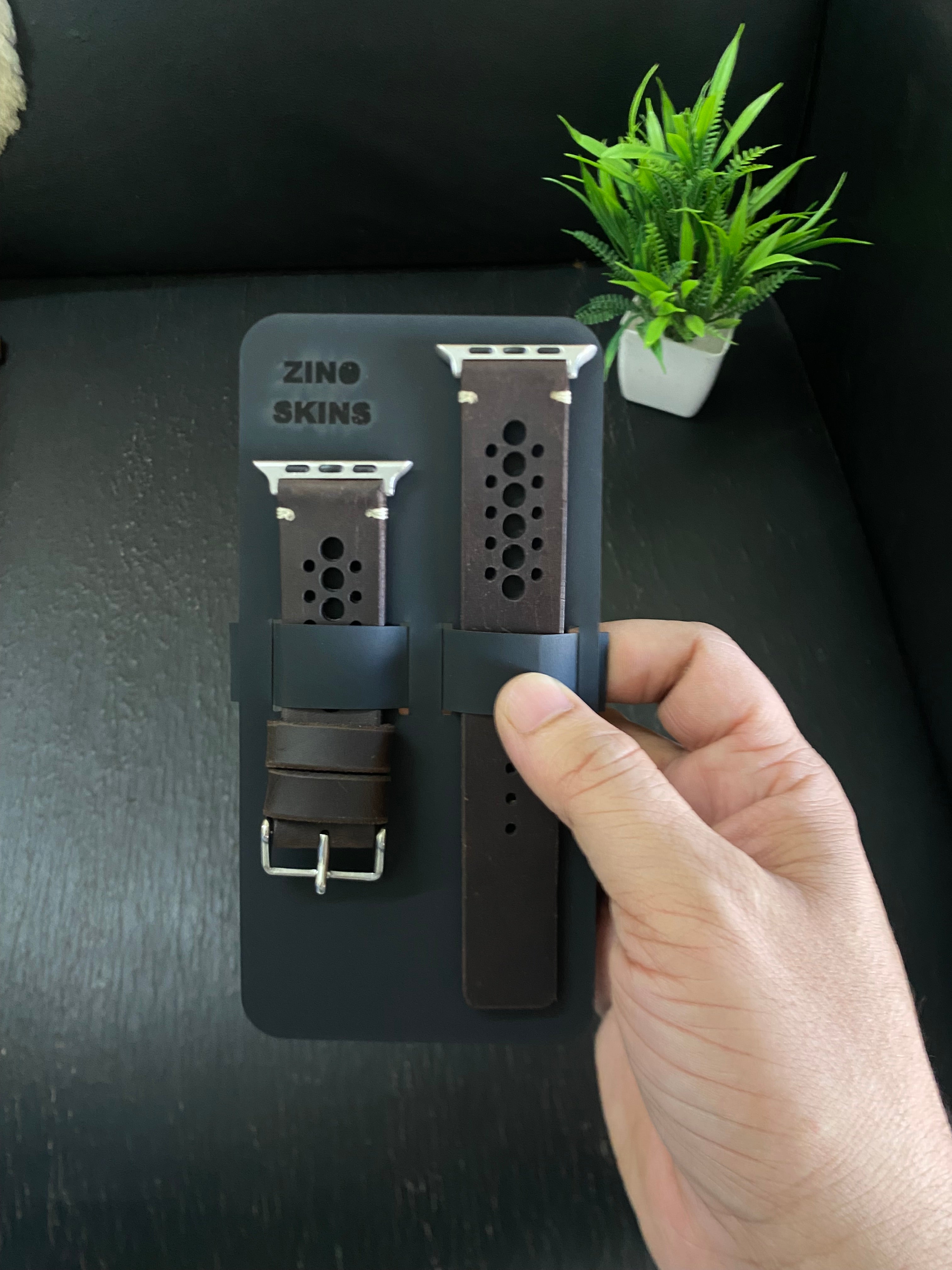 COMBO Darkest Brown Leather Strap N Band Style Band for Apple Watch + Same Color Leather Wallet Handmade | ZINOSKINS