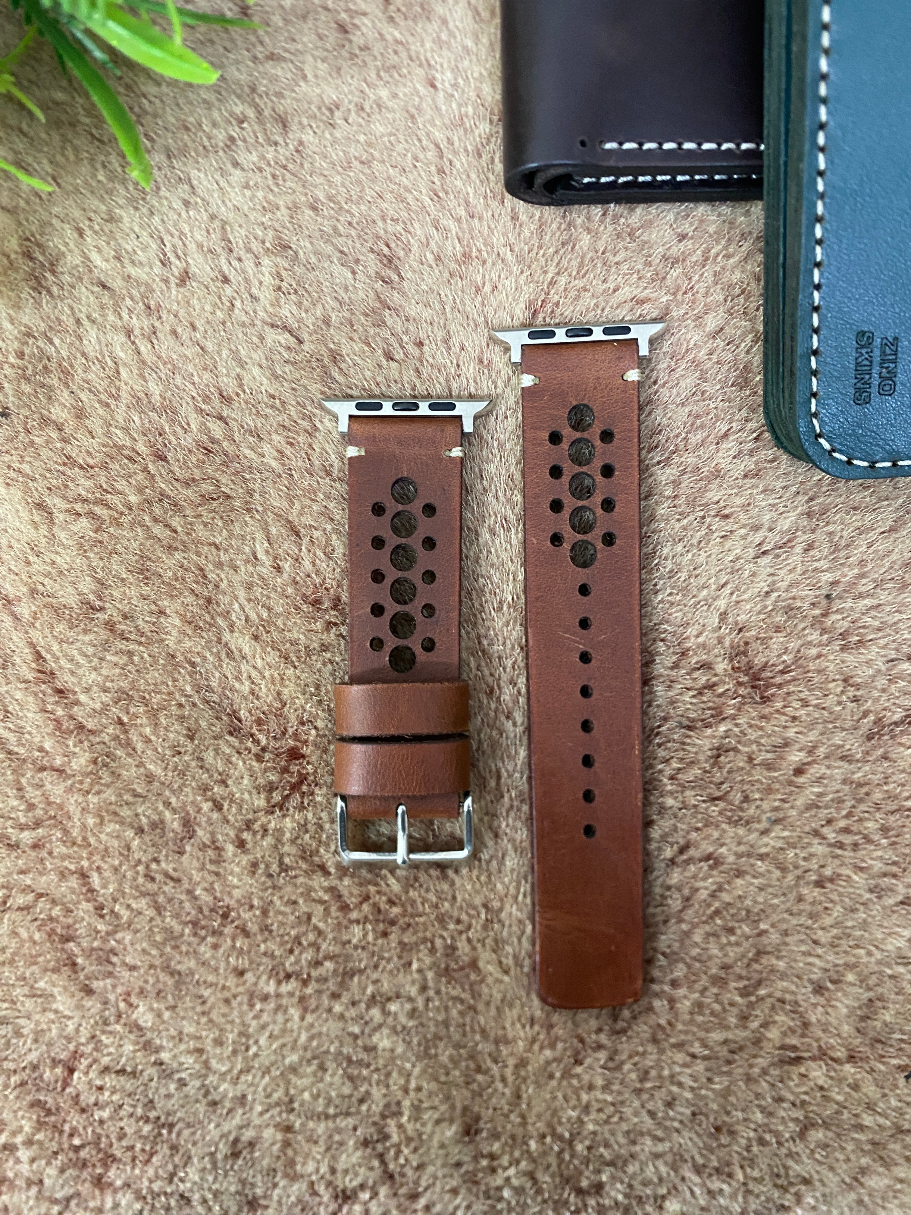 COMBO Tan Leather Strap N Band Style Band for Apple Watch + Same Color Leather Wallet Handmade | ZINOSKINS