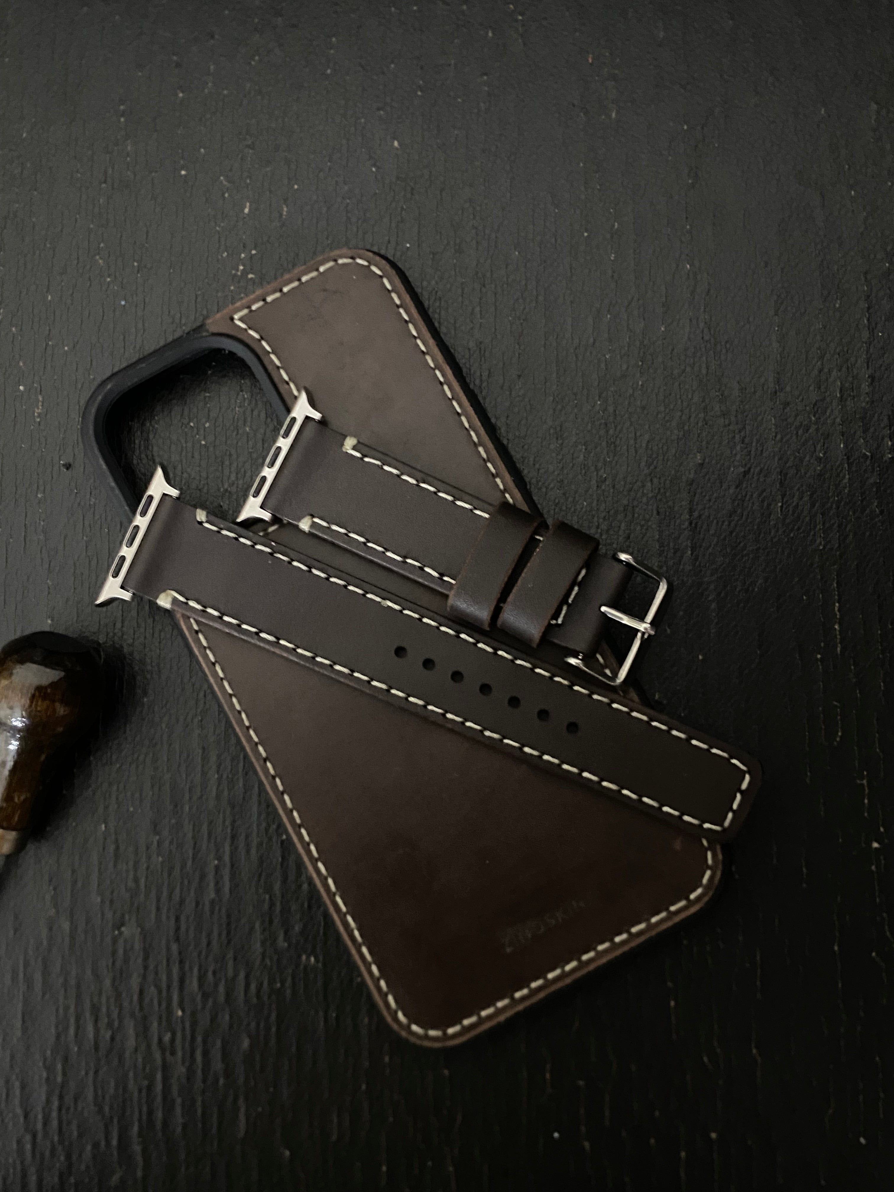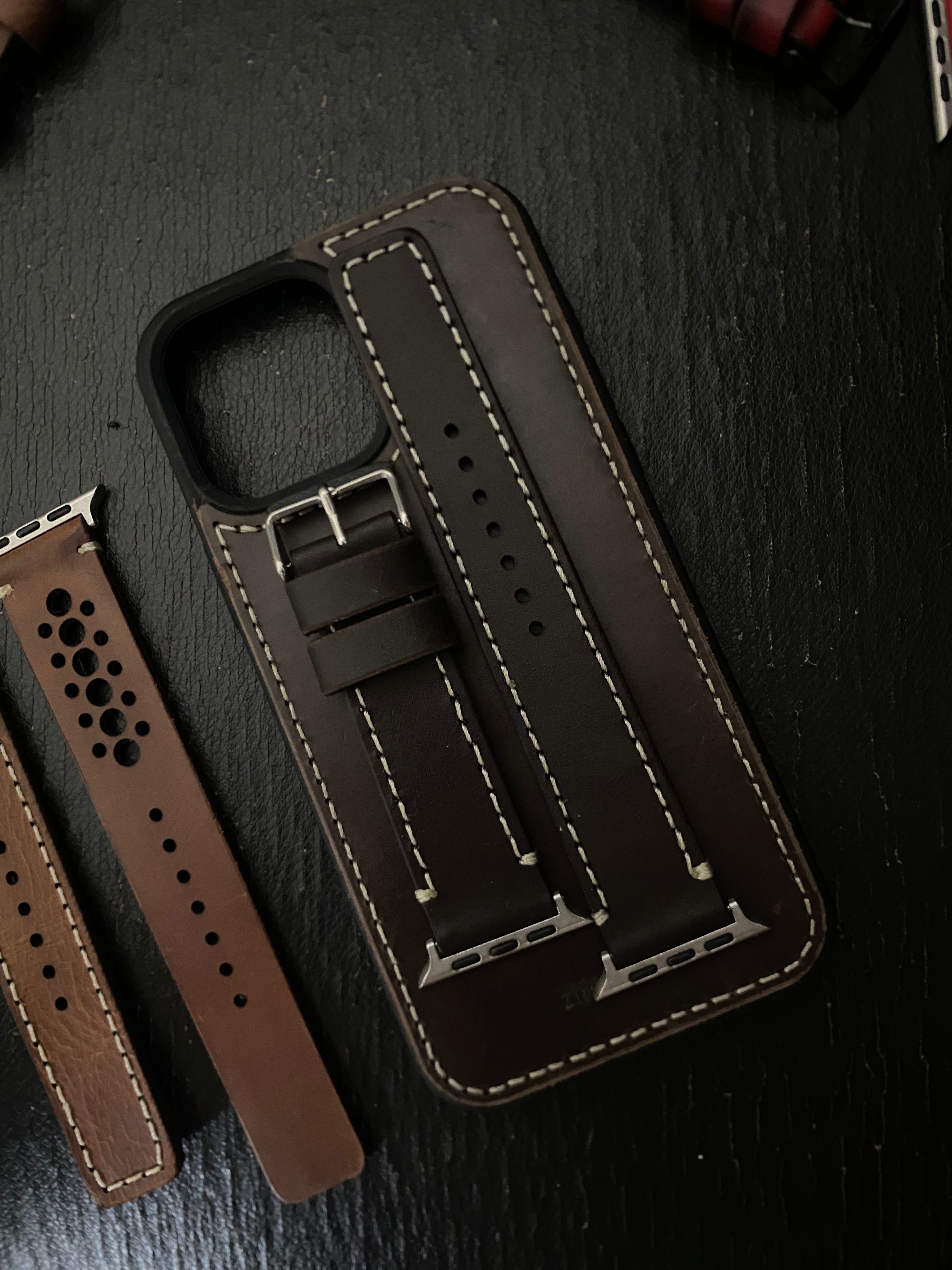 Upgrade your everyday style with our Handmade Darkest Brown Leather Apple Watch Strap + Matching iPhone Case Combo 🤎✨
