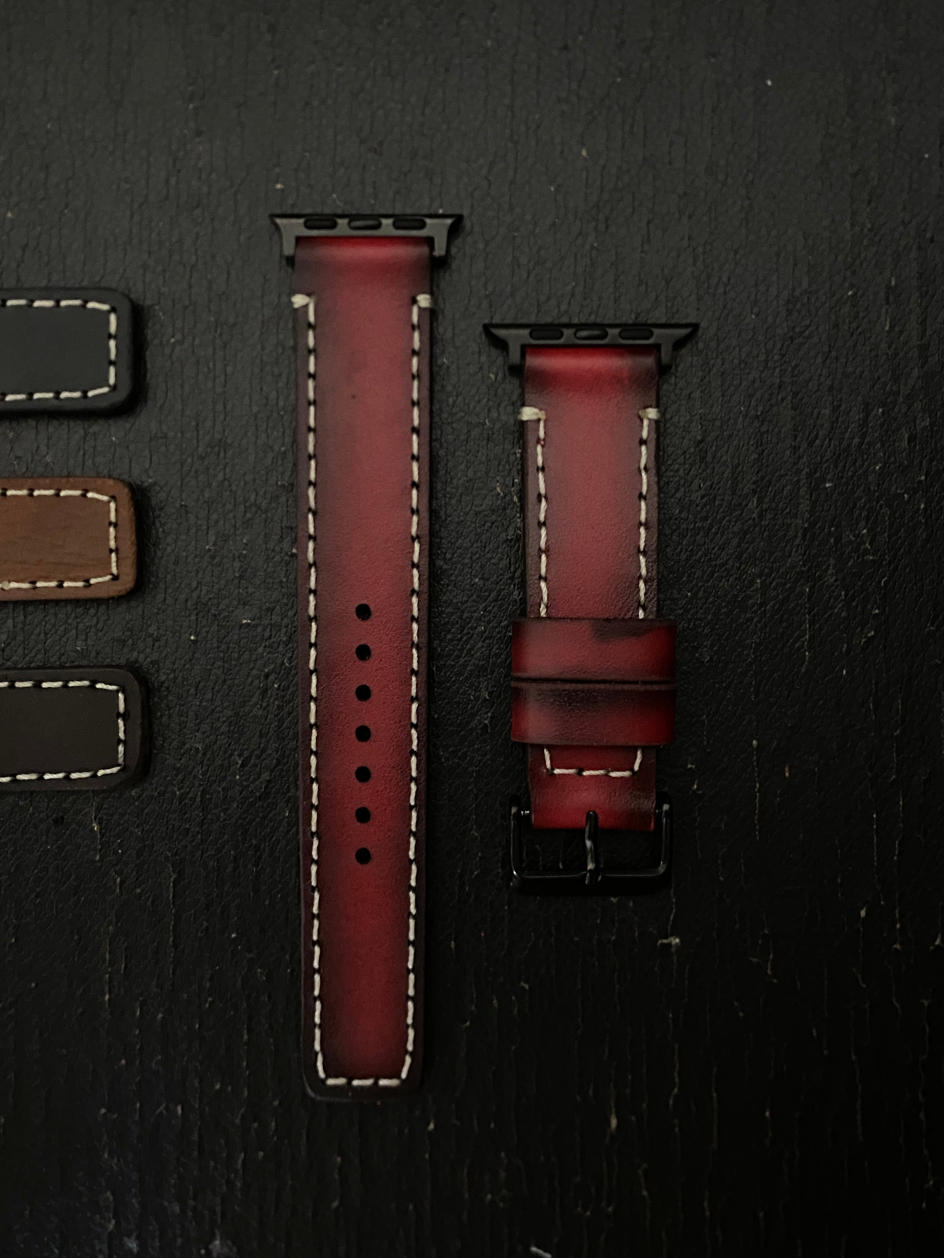 🎨 Red Edge Tone Leather with a bold, With Ivory Color Thread. Full Stitch Style.