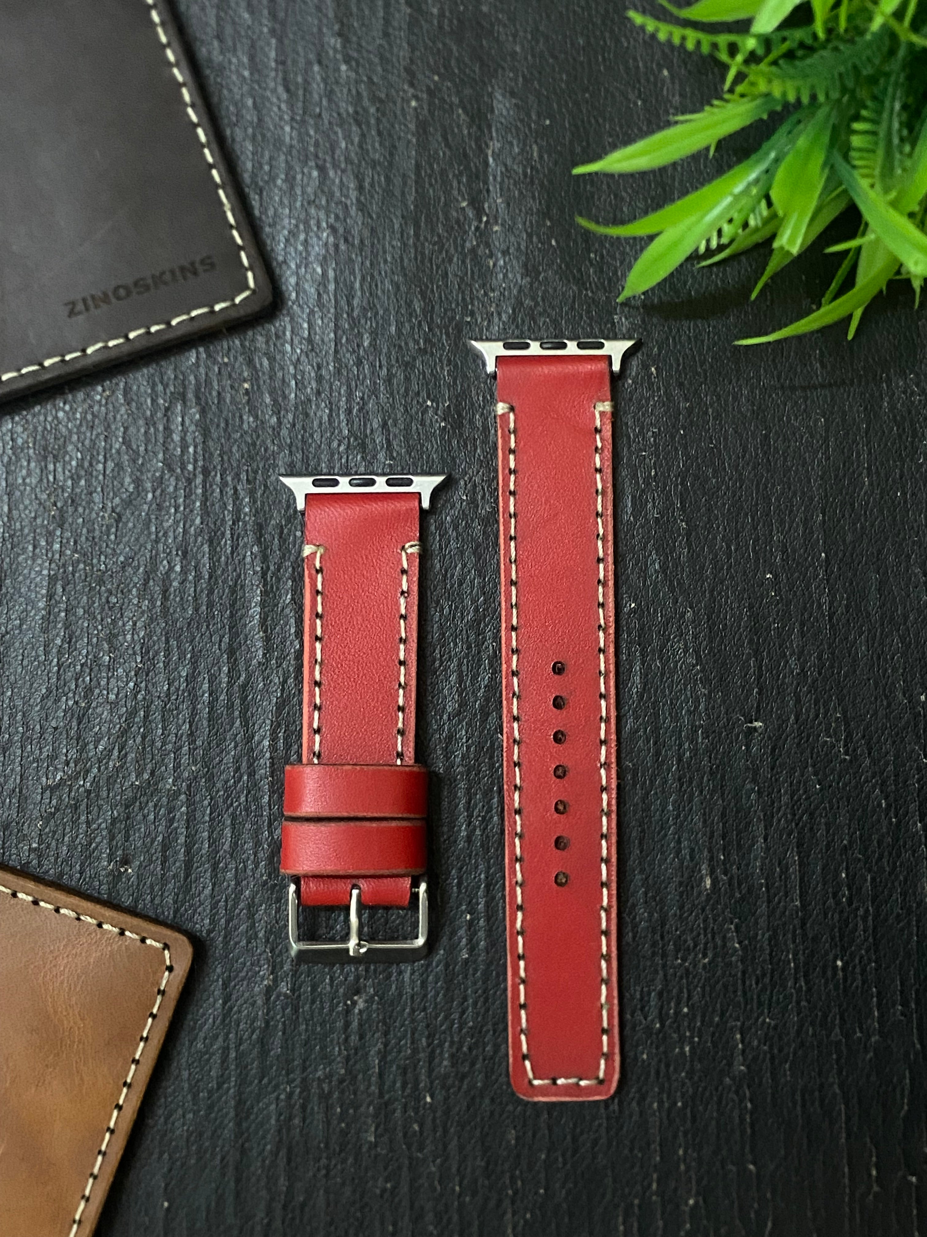 Red Leather Strap Full Stitch Style Straps for Apple Watch Leather Band | ZINOSKINS