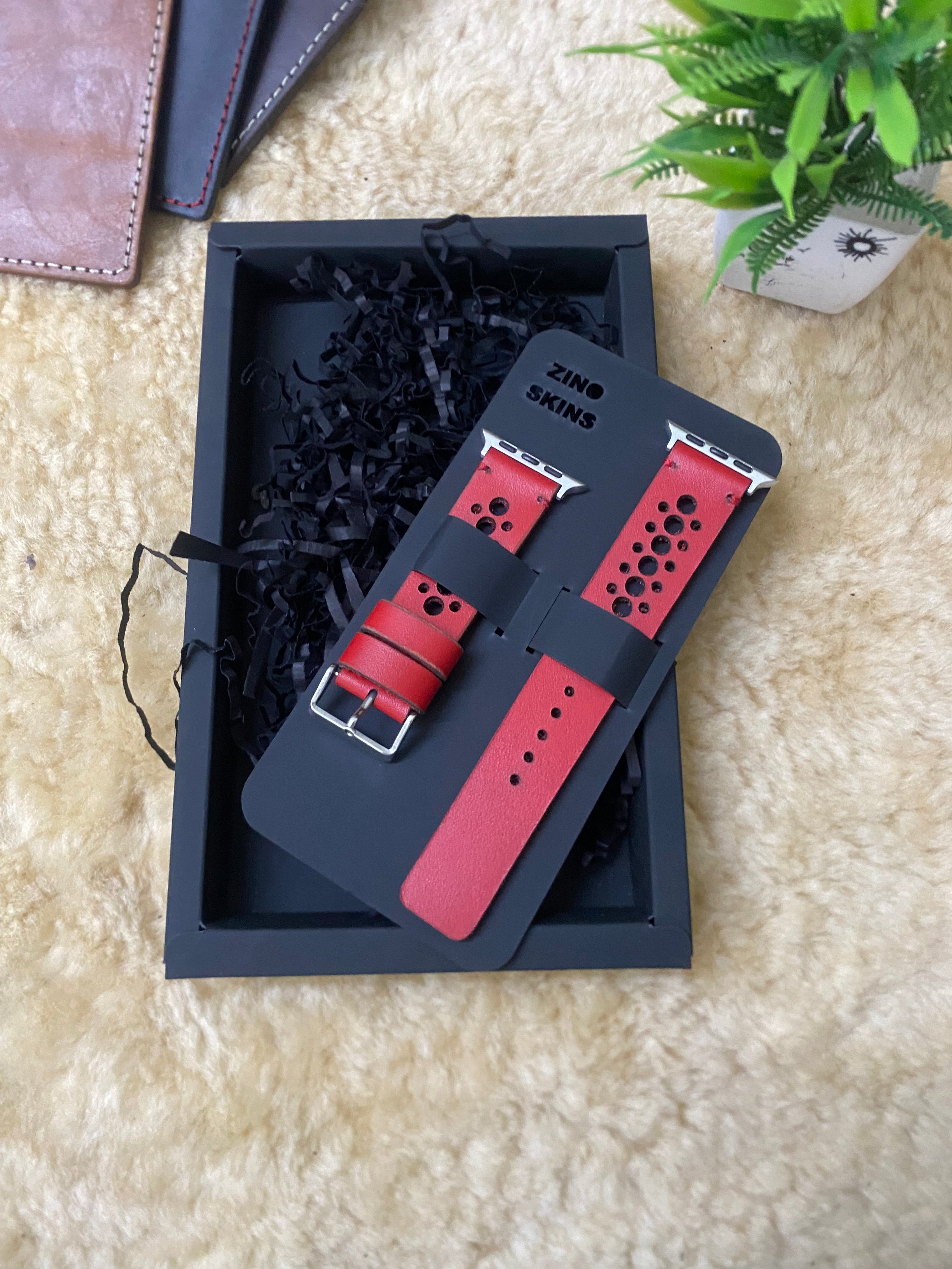 Red Leather Strap N Band Style Straps for Apple Watch Leather Band | ZINOSKINS
